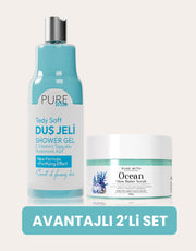 Okyanusun derinliklerinden gelen ferahlatıcı esinti banyonuzu sarsın. Hyaluronik Asit ve E Vitamini topçuklu Duş Jeli cildinize nem bombası etkisi yaparken; Shea yağlı Vücut Peelingi cildi ölü hücrelerden arındırıp nefes aldırır.